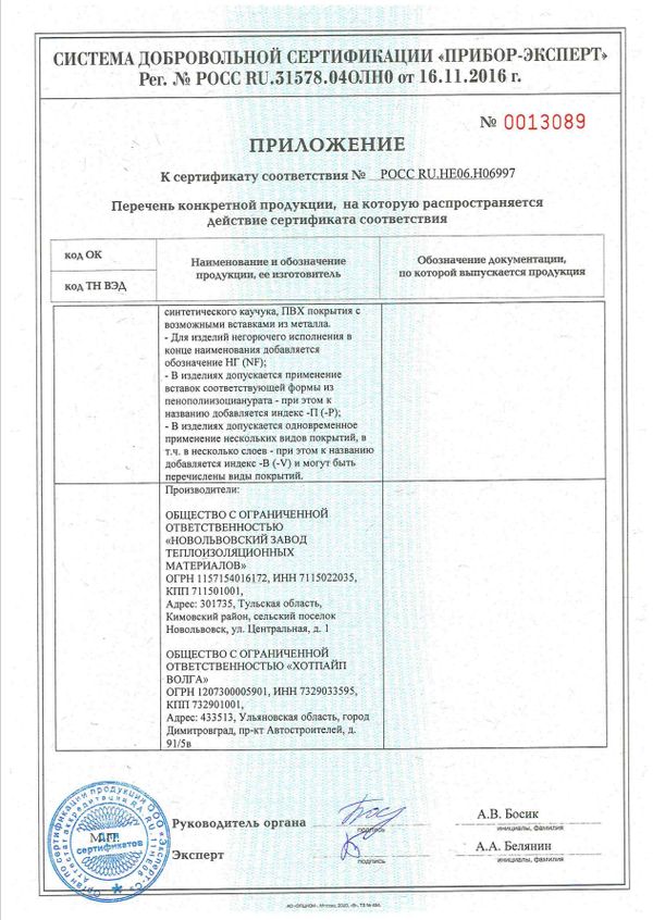 Используется для теплоизоляции охладительных установок острого пара свыше 350 °C. Для теплоизоляции клапанов и задвижек трубопроводов ТЭС, а так же для теплоизоляции печного оборудования.